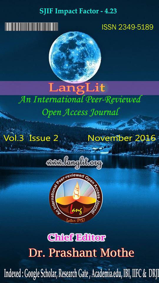 It gives me an immense pleasure to tell you that the second issue (Volume. 3 Issue 2) of LANGLIT: An International Peer-Reviewed Open Access Journal (ISSN 2349 – 5189, Impact Factor- 4.23) released Online on 30th Nov.. ..Thank you for making the Issue a grand success with 150 Articles, 31 Poems, 6 Interviews,6 Book Reviews and 6 Short Stories,…we are overwhelmed with your contributions from all over India and abroad as well